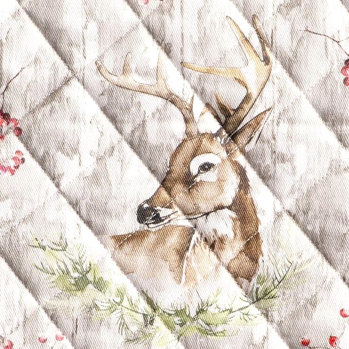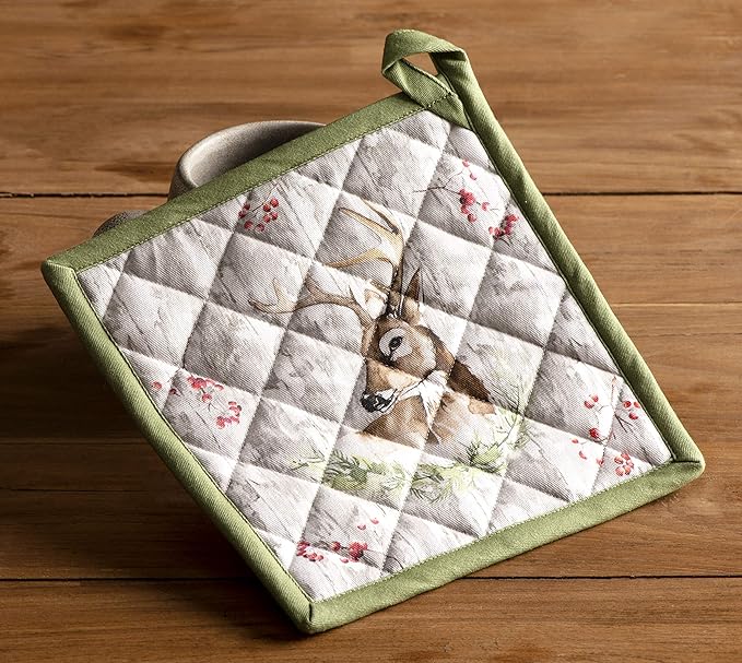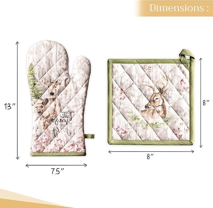 Maison d' Hermine 100% Cotton Oven Mitt & Pot Holder Set (7.5"x13" & 8"x8") Heat Resistant BBQ Cooking Gloves with Loop for Thanksgiving Christmas Decorations Handling Hot Pans (Mountain Life)