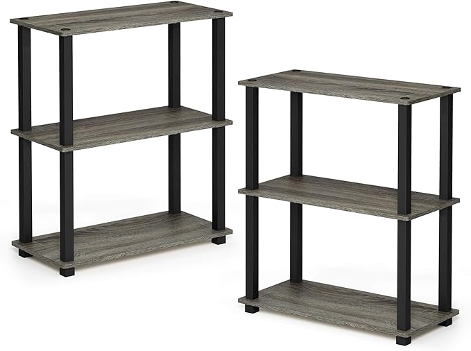Furinno TURN-S-TUBE Storage Shelves Set of 2, 3-Tier Book Shelf, Corner Shelf, Toolless Open Shelves, Square Tubes, for Organization and Storage, Living Room, Garage, Home Office, French Oak