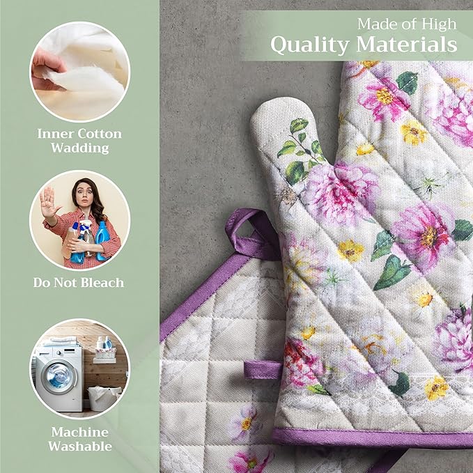 - Premium Quality: Crafted from quilted 100% cotton, this heat resistant oven mitt and pot holder set offers comfort, flexibility, and protection from hot cookware. Ideal cotton oven mitts for daily kitchen use and cooking safety