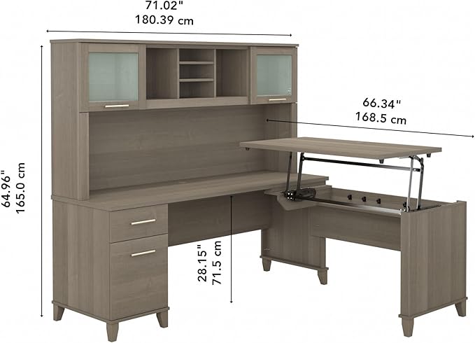 Bush Furniture Somerset 72W 3 Position Sit to Stand L Shaped Desk with Hutch in Ash Gray | Adjustable Height Table for Home Office