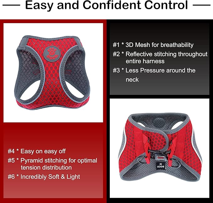 - CAN’T FIND GEAR THAT KEEPS FUR HEALTHY TOO? This harness reduces friction and shedding with its smooth air mesh, supporting coat care during walks. Unlike rough materials that cause irritation or hair fall, this gentle fit promotes healthier fur.