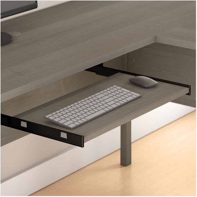- Bundle includes: 60W L Shaped Desk with Storage, 60W Desk Hutch