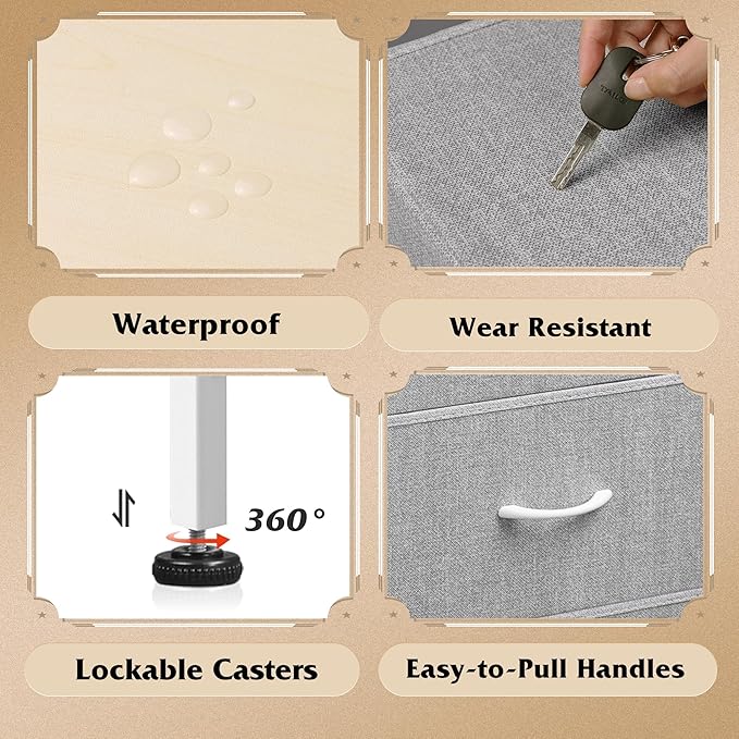 - š¦š§šØš„šš¬ š¦š§š„šØšš§šØš„š:Strong steel frame and water-resistant wood top offer stable support and ensure years of use; High-quality non-woven fabric drawers is easy to clean.
