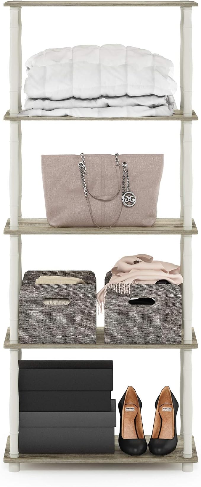 Furinno Turn-N-Tube 5-Tier Multipurpose Shelf / Display Rack / Storage Shelf / Bookshelf, Classic Tubes, Sonoma Oak/White