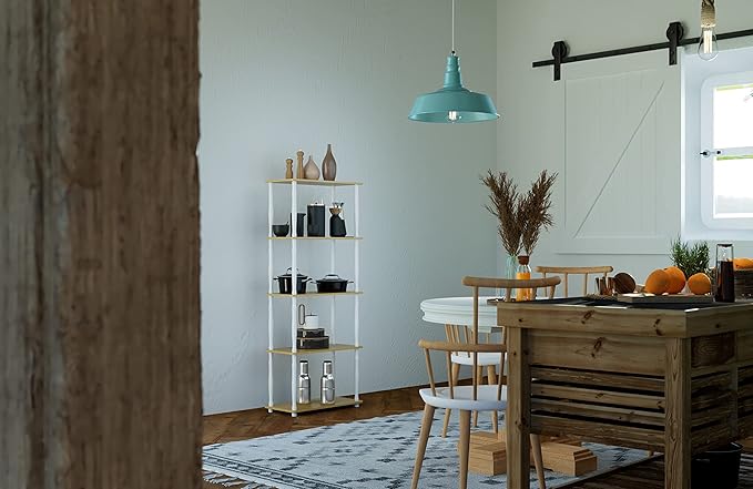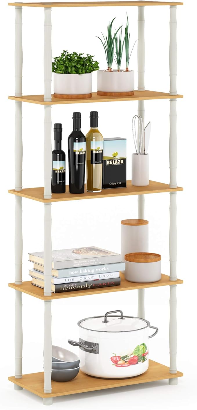 Furinno Turn-N-Tube 5-Tier Multipurpose Shelf / Display Rack / Storage Shelf / Bookshelf, Classic Tubes, Beech/White