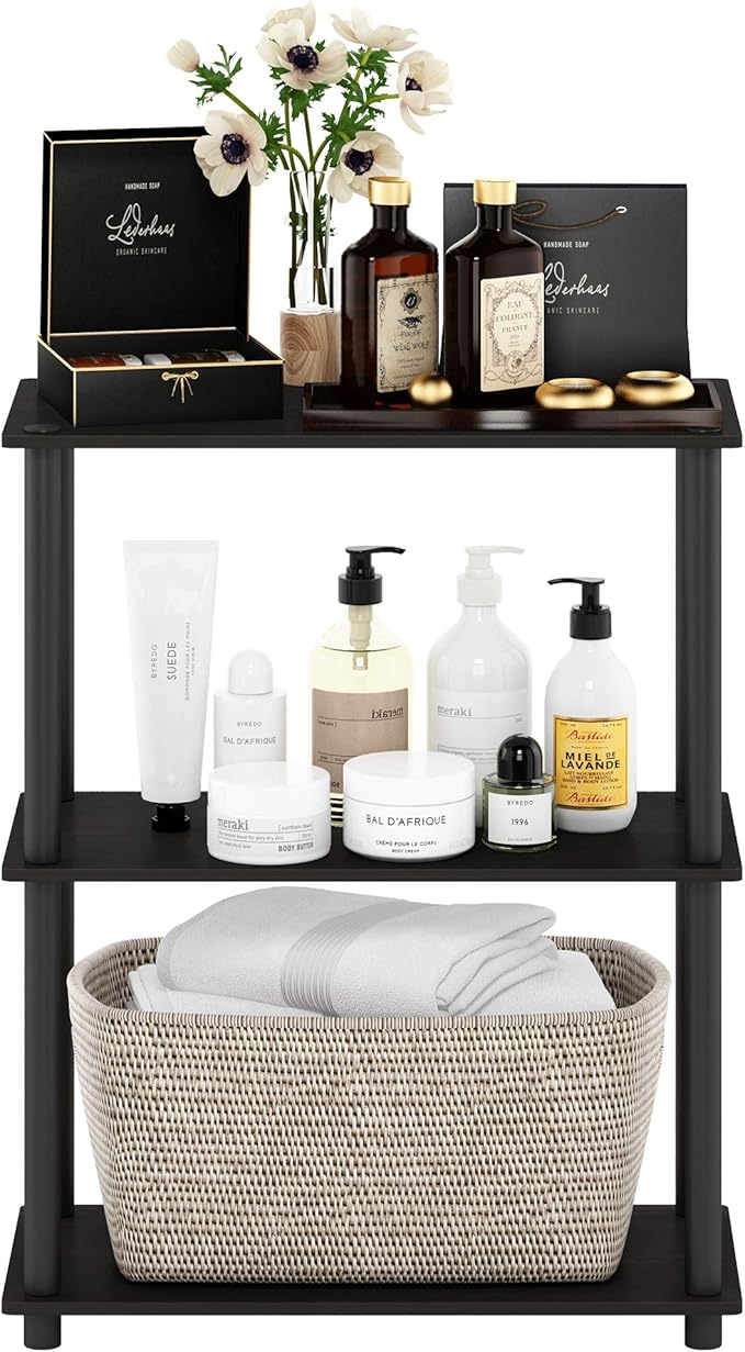 Furinno TURN-N-TUBE Storage Shelves, 3-Tier Book Shelf, Corner Shelf, Toolless Open Shelves, for Organization and Storage, Living Room, Garage, Home Office, Espresso
