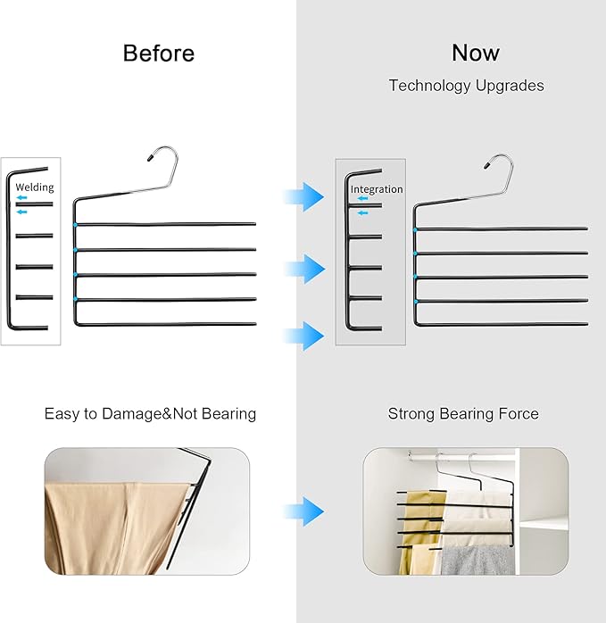 - Durable heavy metal construction, We upgrade our design without any soldering on the major structure. No breakking even you hang 5 pairs heavy pants on.Slip-resistant vinyl coating protect the pants from slipping off.
