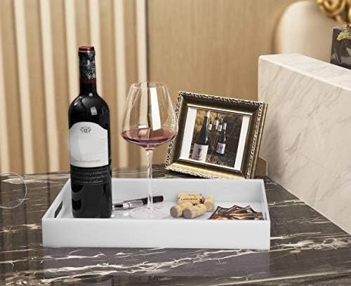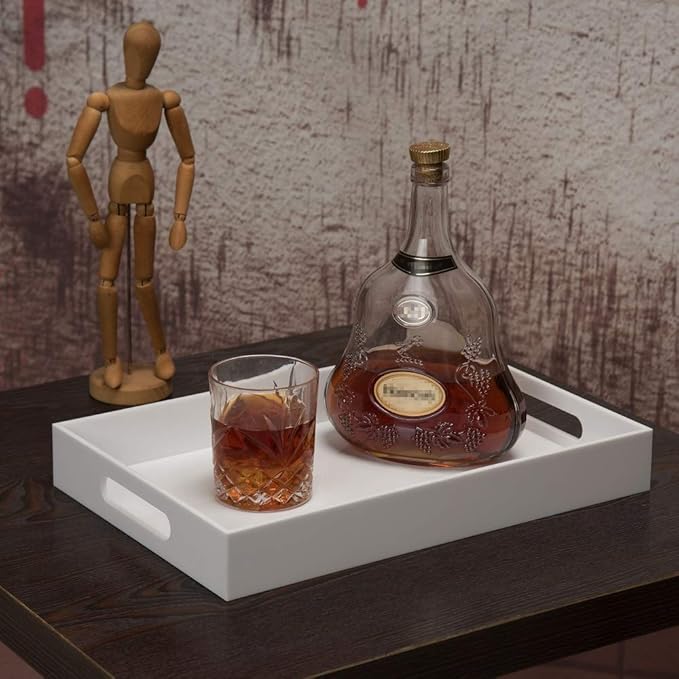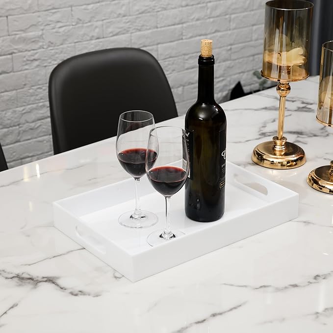 Glossy White Sturdy Acrylic Serving Tray with Handles-10x15Inch-Serving Coffee Appetizer Breakfast Butler-Kitchen Countertop-Makeup Drawer Organizer-Vanity Table Tray-Ottoman Tray