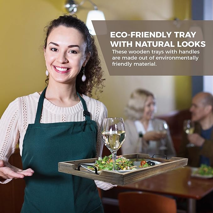 - USE FOR SERVING OR HOME DECOR – While These Butler Trays Are Great For Serving Guests, They Also Make a Great Decorative Piece For The Home! Use Them On The Dining Room Table or Hutch, As a Stylish Addition To Your Coffee Table, or As The Perfect Decor For Your Ottoman . The Matte Black Metal Handles and Natural Vintage Wood Grain Will Make Them a Great Focal Point To Complete Your Design.
