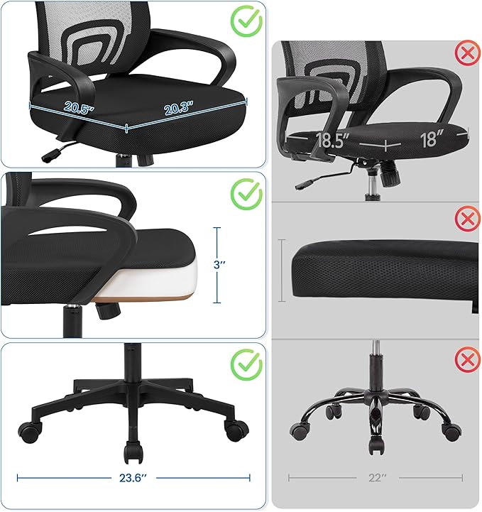 - LARGE CUSHIONED SEAT: -This home office chair features a spacious seat that measures 20.3’’(W) x 17.7’’(D) and is padded with 25D high-density foam, offering substantial cushy support and relieving fatigue from hours of sitting. A larger seat can accommodate users of different body sizes