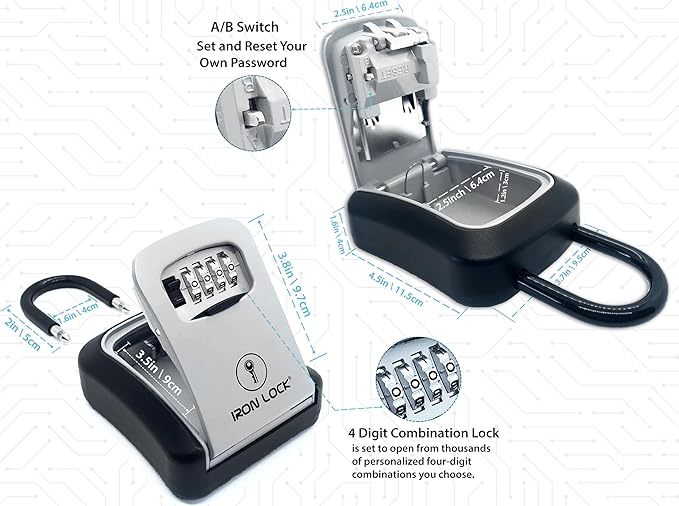 - 🔑 Durable zinc alloy and aluminum construction resists cutting, prying, hammering and harsh weather — the ideal lock box for keys outside your home or rental.