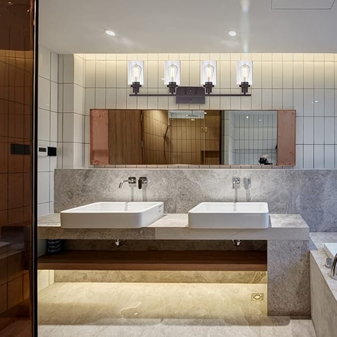 MELUCEE 4 Lights Wall Sconce Lighting Oil Rubbed Bronze Finished with Clear Glass, Bathroom Vanity Light Fixtures Wall Lights Bedroom Porch Kitchen Living Room (Patent No.: US D963914 S)