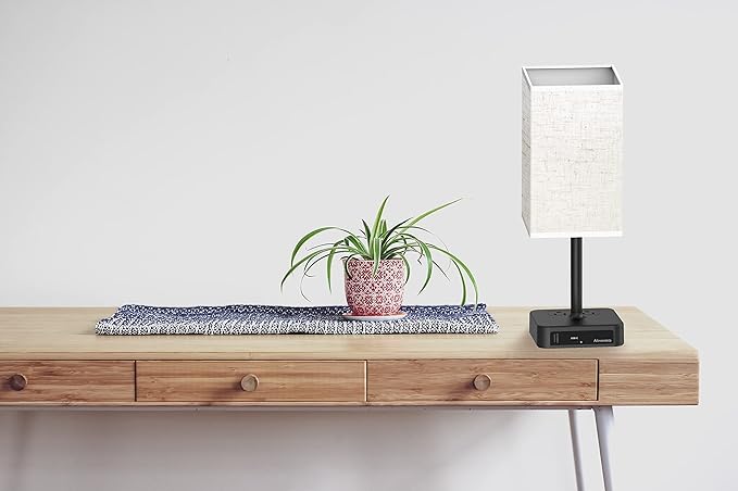 - 【MINIMALIST DESIGN】Alimentata nightstand lamp comes with sleek fabric shade and the Fireproof plastics power base, creating a warm and cozy feelings for your home. Perfect for end table,dinning table,coffee table, bed,office, bedroom,guest room, den, nursery, meditation room.This bedside desk lamp can be used with standard e26/e27 led bulbs(included 3w bulb,The bulb is a gift, not within warranty range).