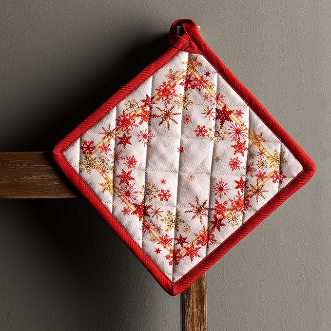 Maison d' Hermine Pot Holders Set 100% Cotton Heat Resistant Potholders 8" x 8" Hot Pads with Loop for Thanksgiving Christmas Decorations BBQ Cooking Baking Handling Hot Pans (Pack of 2, Crystal Star)