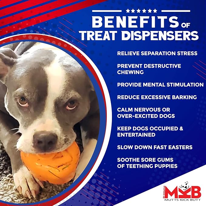 - BENEFITS OF TREAT DISPENSERS – Relieve separation stress, reduce problem chewing, provide mental stimulation, reduce excessive barking, calm nervous & over-excited dogs, keeps dogs occupied, slow down fast eaters, and soothe gums of teething puppies.