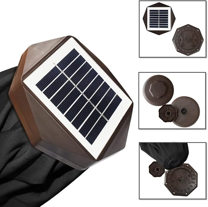 - LED Lighting From the Sun: Dual switched hub light and 80 rib lights, more than most LED lights of patio umbrellas on the market. More rib lights provide a brighter view. Built-in rib lights are not easy to damage and aging. Powered by a solar rechargeable battery.