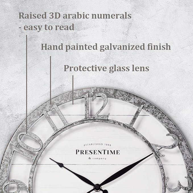 - ★【 Clock Makes a Great Gift 】: Whether moving into a new home or looking for a gift, make an accent statement in your entryway, living room, office, cabin, cottage, fireplace, kitchen, or bathroom with a stylish and decorative timepiece from PresenTime & Co.