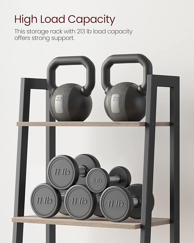 VASAGLE Ladder Shelf, 4-Tier Bookshelf, Storage Rack, Bookcase with Steel Frame, for Living Room, Home Office, Kitchen, Bedroom, Industrial Style, Heather Greige and Ink Black ULLS44MB