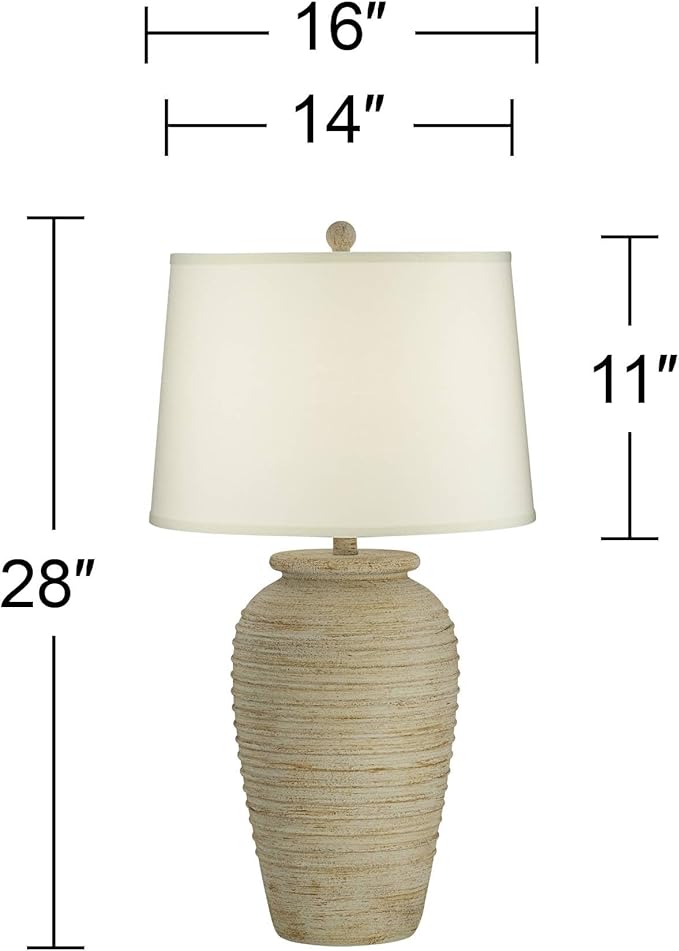 John Timberland Austin Country Cottage Southwest Style Jug-Shaped Table Lamp 28" Tall Sand Tone Desert Ridged Cream Linen Drum Shade for Living Room Bedroom House Bedside Nightstand Home Office