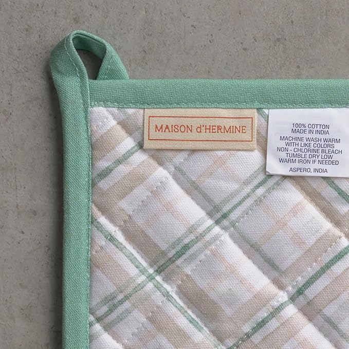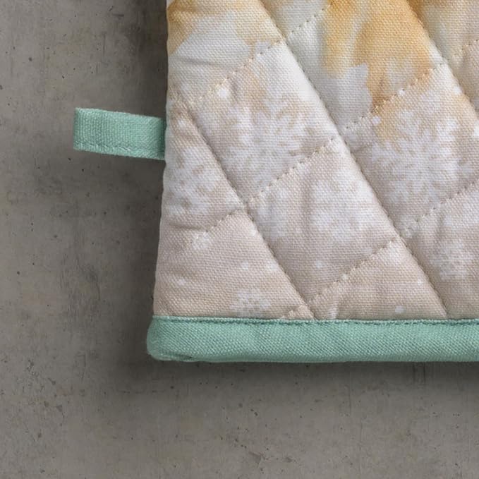 - Package Includes: Set includes 1 oven mitt (7.5" x 13") and 1 pot holder (8" x 8"), perfect for baking, roasting, and cooking. Made from 100% cotton for reliable heat protection. Designed in Europe and made in India