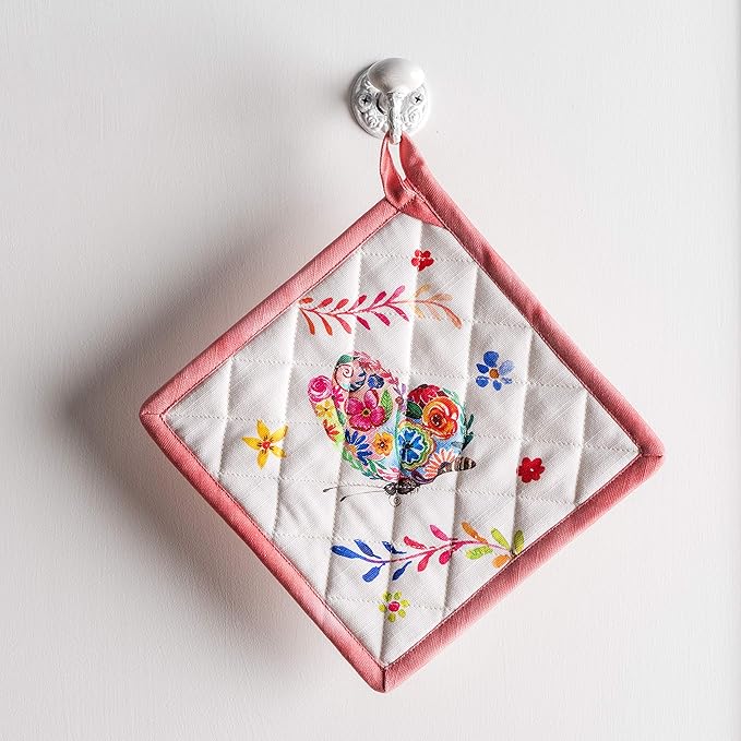 Maison d' Hermine Pot Holders 100% Cotton Heat Resistant Potholders 8" x 8" Hot Pads with Loop BBQ, Cooking, Grilling, Kitchen, Handling Hot Pans Spring/Summer (Pack of 1, Happy Florals - High Summer)