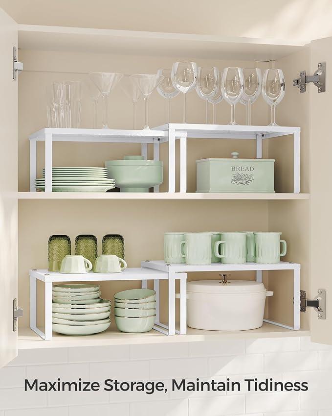 - [Maximize Your Storage] If you have a large cupboard but your items still have nowhere to go, try this set of 2 cabinet organizers—it takes full use of the vertical space and doubles your storage space