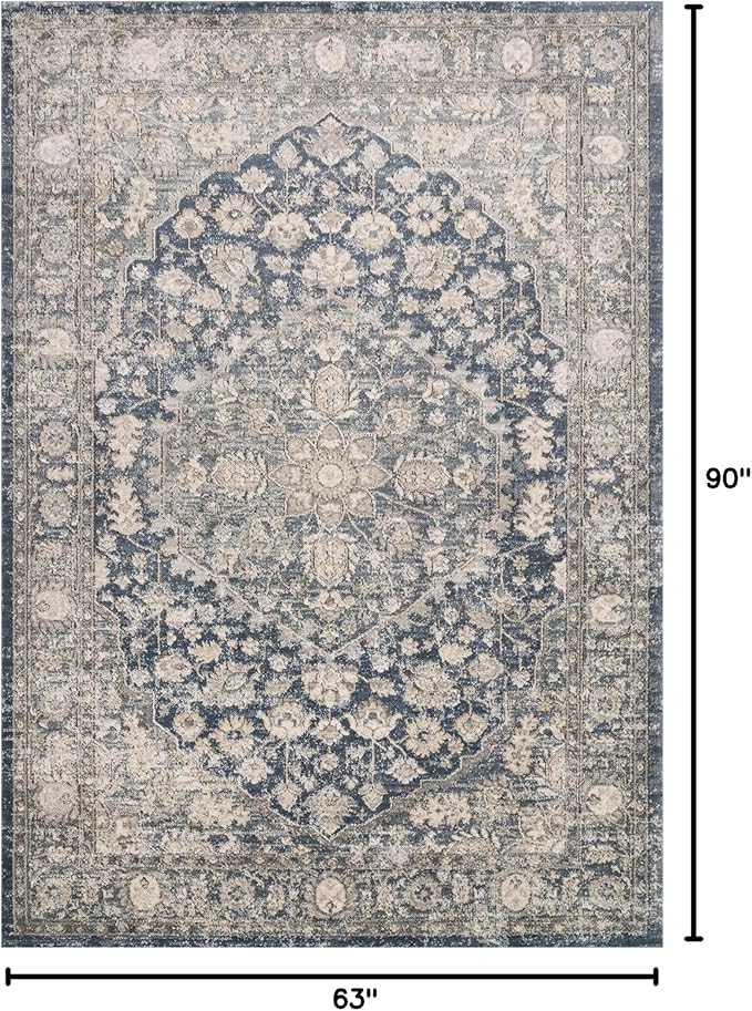 Loloi Teagan Collection TEA-01 Denim/Mist 5'-3" x 7'-6" Area Rug, Large, Soft Neutral Rug, High-Traffic for Living Room, Bedroom, Home Office, Dining Area