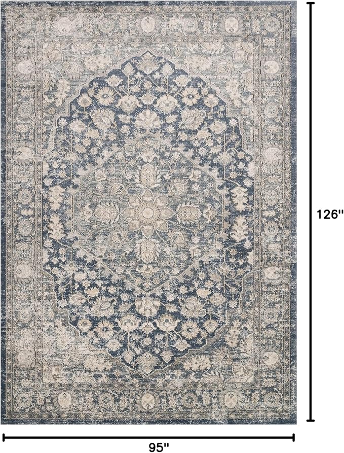 Loloi Teagan Collection TEA-01 Denim/Mist 7'-11" x 10'-6" Area Rug, Large, Soft Neutral Rug, High-Traffic for Living Room, Bedroom, Home Office, Dining Area