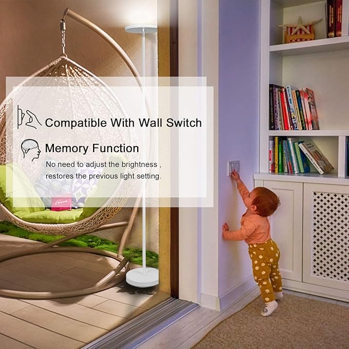 - Multiple Control Ways:With the remote control, you can easily control the floor lamp without leaving the sofa and warm bed (with a 32.8ft/10m range).Add-on touch control, stepless brightness adjustment(brightness from 5% to 100%) by long touch