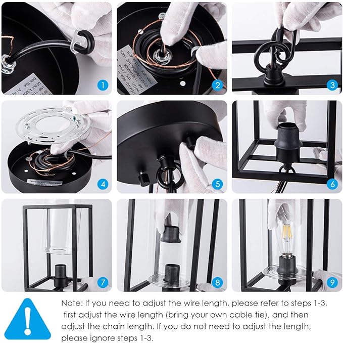 - 【Adjustable Height】Our hanging lamp size is 6.3 in x 6.3 inx 79.4 in. 65.12 in of the adjustable chain, you can change the length of the chain according to your preferences and design.