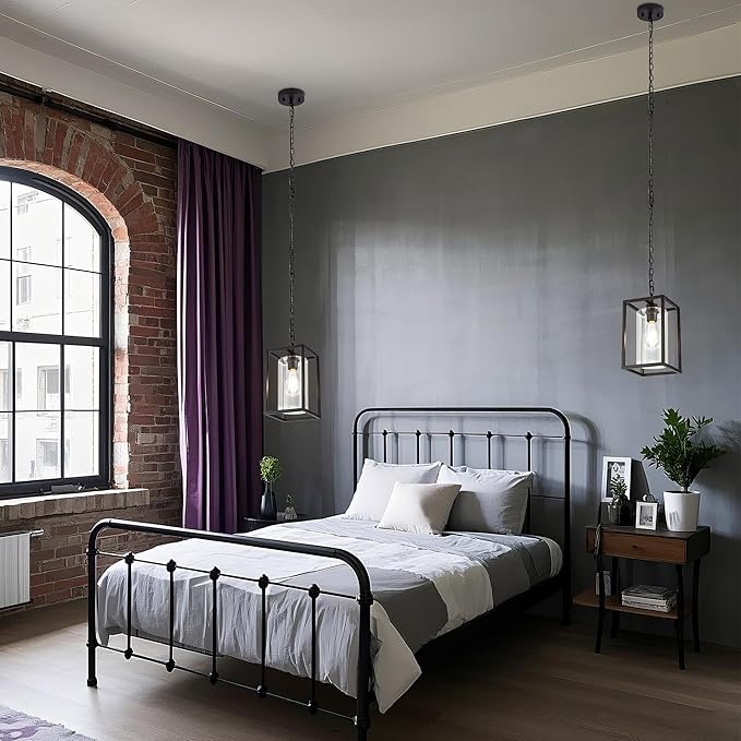 - 【Industrial Design】This black pendant light consists of geometric lantern shape and clean lines, simple and unique, bringing a simple style and unique industrial atmosphere to your room.