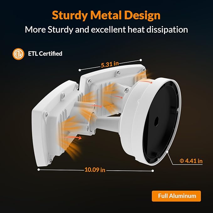 - Full Metal Design Security Lights: The led flood light outdoor is made of full aluminum with good heat dissipation,so which is more solid than other brands, wonderful to light up your backyard, garage, porch, entryways, barn, shop, garden, stair or alley etc outside usage; The lifespan will be up to 50,000 hrs