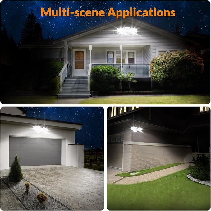 - Adjustable Design: It’s easy & flexible to adjust the 2 bright LED light heads to a different angle as your requirement, this outdoor LED flood light brings extra safety to your house