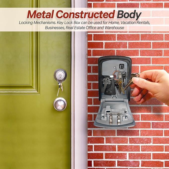 - 🔑 Heavy-duty outdoor security – built from reinforced zinc alloy and aluminum, this XXL key lock box withstands cutting, prying, hammering, rust, and harsh weather.