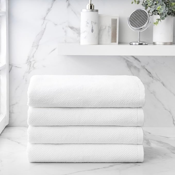 Welhome Franklin 100% Cotton Popcorn Textured Towel Set - 4 Pack Bath Towels, 600 GSM, Soft & Plush, White