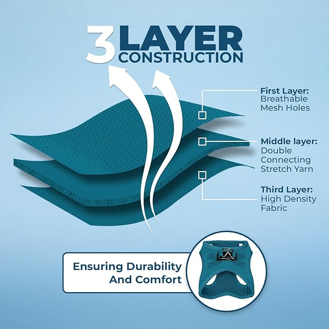 - Comfort All Year: Made with a soft and breathable air mesh, this lightweight, fast drying harness ensures maximum comfort for your pet during walks, regardless of the season