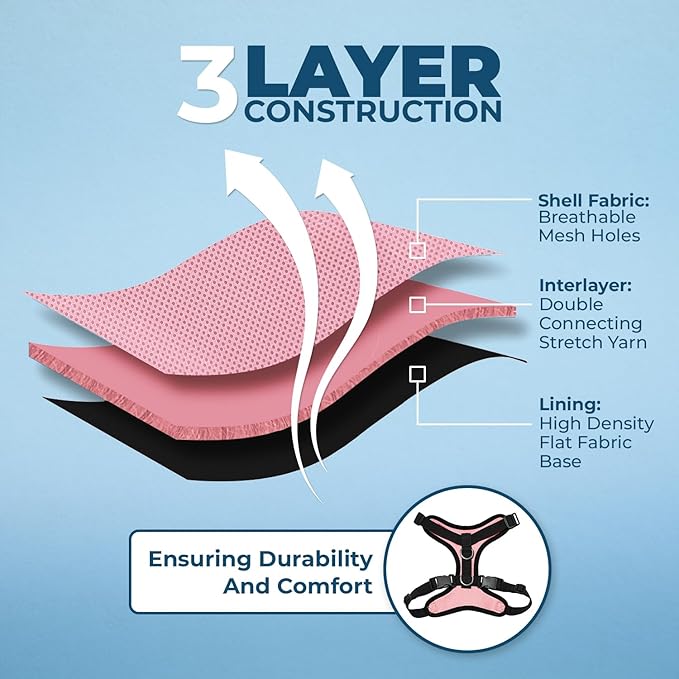 - ALL WEATHER AIR MESH: Made a soft, breathable air mesh, this fully adjustable and lightweight pet harness is perfect for walks all year round