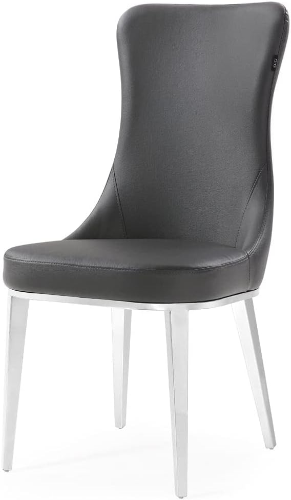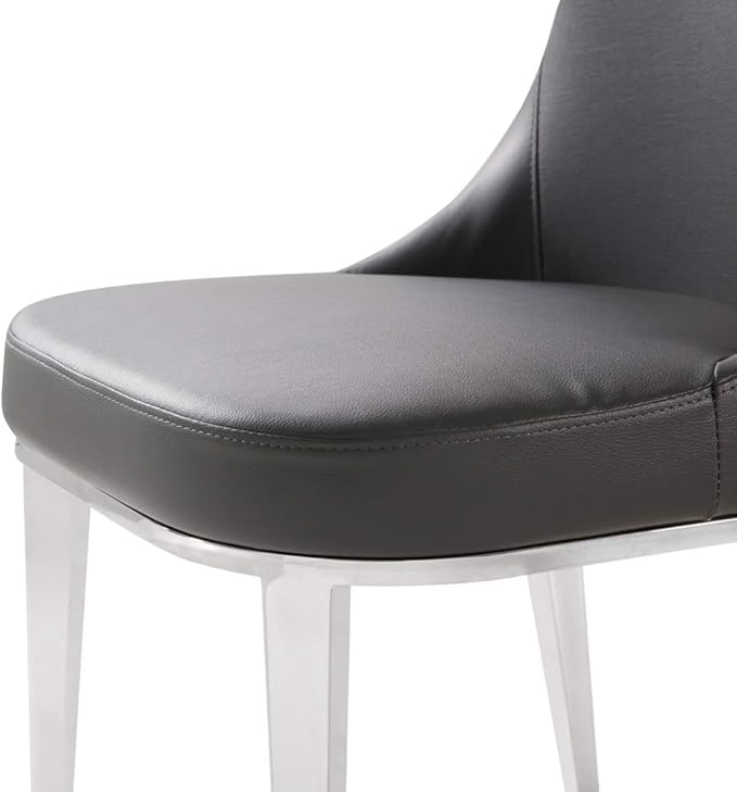 ZURI Modern Norma Dining Chair - Dark Grey with Polished Stainless Steel Base