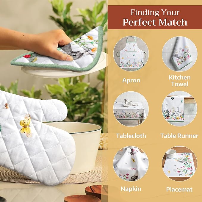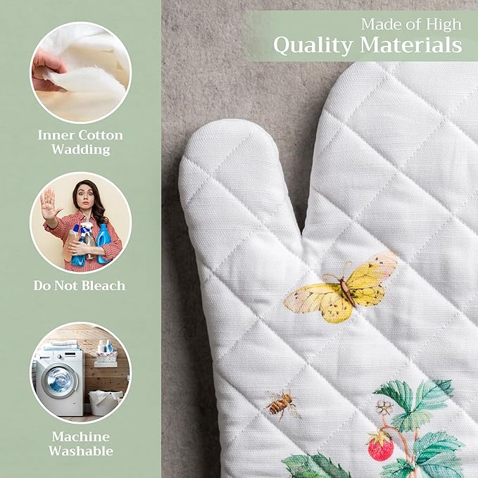 Maison d' Hermine Oven Gloves 100% Cotton Oven Mitt 7" x 13" with Loop Heat Resistant, BBQ, Cooking Gloves, Baking, Grilling, Kitchen, Handling Hot Pans Spring/Summer (Pack of 1, Printemps)