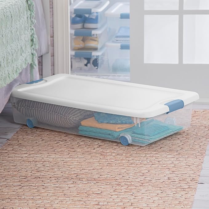 - Effortless Underbed Storage: Equipped with smooth gliding wheels, these containers easily slide out from under a bed, providing convenient access to stored items. The efficient space-saving shape and modern styling make them perfect for under-bed storage.