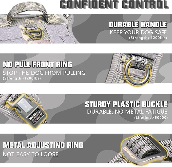AUROTH Tactical Dog Harness for Small Medium Large Dogs No Pull Adjustable Pet Harness Reflective K9 Working Training Easy Control Pet Vest Military Service Dog Harnesses Medium Grey Camo