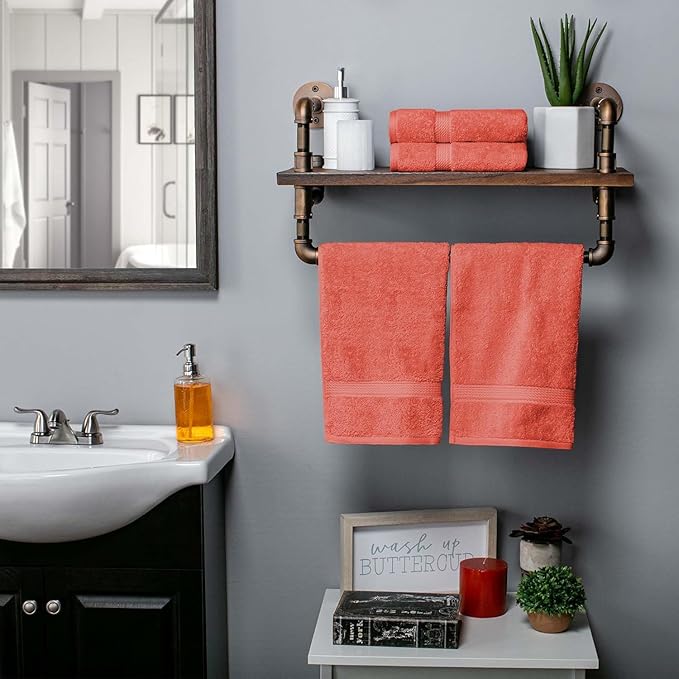 Superior Egyptian Cotton Pile Hand Towel Set of 4, Ultra Soft Luxury Towels, Thick Plush Essentials, Absorbent Heavyweight, Guest Bath, Hotel, Spa, Home Bathroom, Shower Basics, Coral