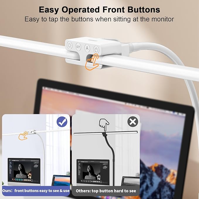 - 【Eye protection No Screen Glare】 It lights up your work space and no reflected glare on the screen or in the eyes which can help you better see what you’re working on, reducing eye fatigue, NO flickering, NO ghost-freeze. What's in the Box: 1*24W Desk Lamp with Clamp, 1 * Power Adapter,1 * User Manual