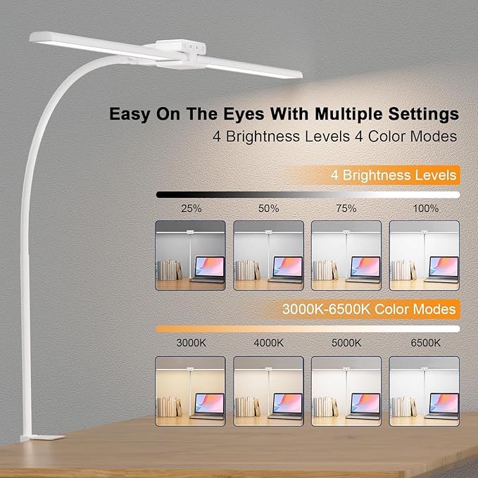 - 【Super Wide, Large and Bright】 With a 31.5 inch 24W double head LED desk light bar , this tall desk lamp fully illuminates entire desk, ideal for a multi-monitor workstation, large table for home office, drawing, sewing, crafting, painting, reading. The maximum working height up to 22.8-inch