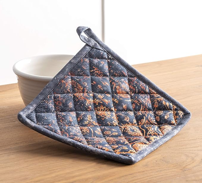 - Premium Quality: Crafted from quilted 100% cotton, this heat-resistant oven mitt and pot holder set protects your hands from hot cookware. Each piece features a built-in hanging loop for easy storage and quick access. This versatile set is perfect for everyday home kitchens, farmhouse kitchens, hotels, restaurants, and bakeries