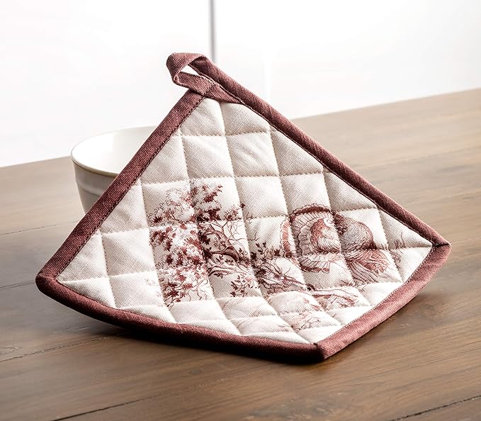 Maison d' Hermine 100% Cotton Oven Mitt & Pot Holder Set (7.5"x13" & 8"x8") Heat Resistant BBQ Cooking Gloves with Loop for Thanksgiving Christmas Decorations Handling Hot Pans (Holy Jouy - Brown)