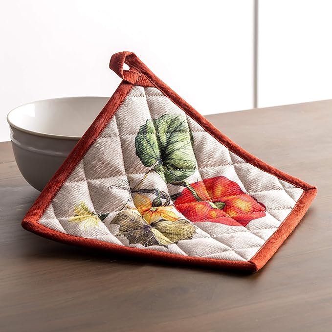 Maison d' Hermine 100% Cotton Oven Mitt & Pot Holder Set (7.5"x13" & 8"x8") Heat Resistant BBQ Cooking Gloves with Loop for Thanksgiving Christmas Decorations Handling Hot Pans (Potiron)