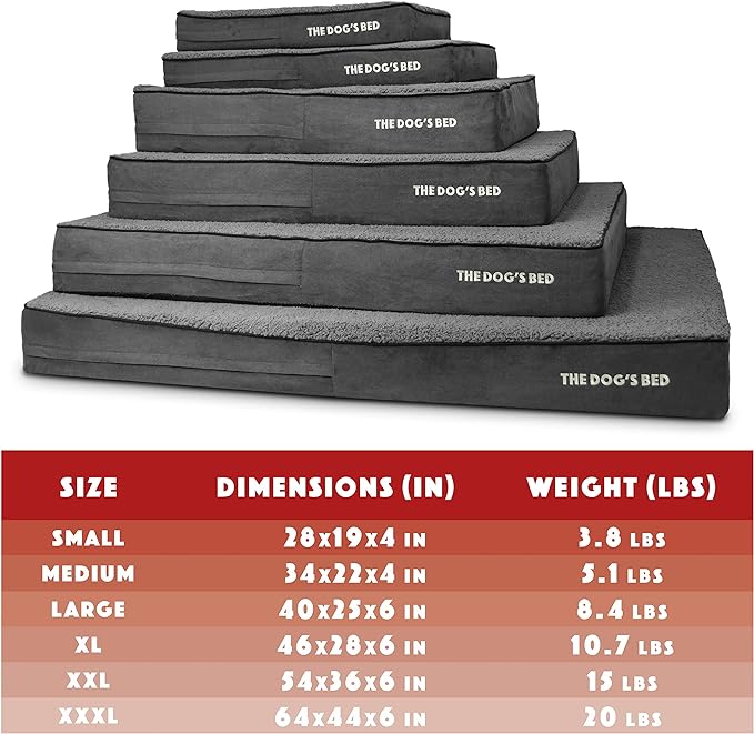 The Dog’s Bed Orthopedic Memory Foam Dog Bed, XL Grey Plush 46x28, Pain Relief for Arthritis, Hip & Elbow Dysplasia, Post Surgery, Lameness, Supportive, Calming, Waterproof Washable Cover