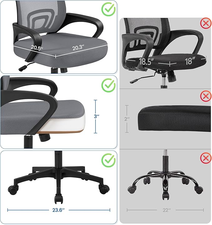 - Breathable Mid-Back Design: Featuring densely knitted mesh backrest, this mesh office chair allows better airflow, accelerating heat and moisture dissipation. Mid-back design supports your spine's natural curve and protects your lower and middle back as it prompts you to sit straight