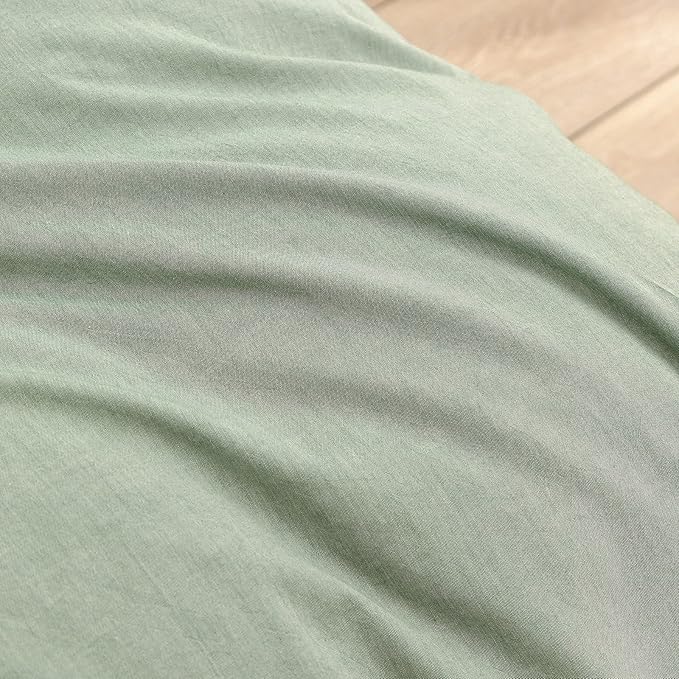 BESTOUCH Duvet Cover Set 100% Washed Cotton Linen Feel Super Soft Comfortable Chic Lightweight 3 PCs Home Bedding Set Solid Green King